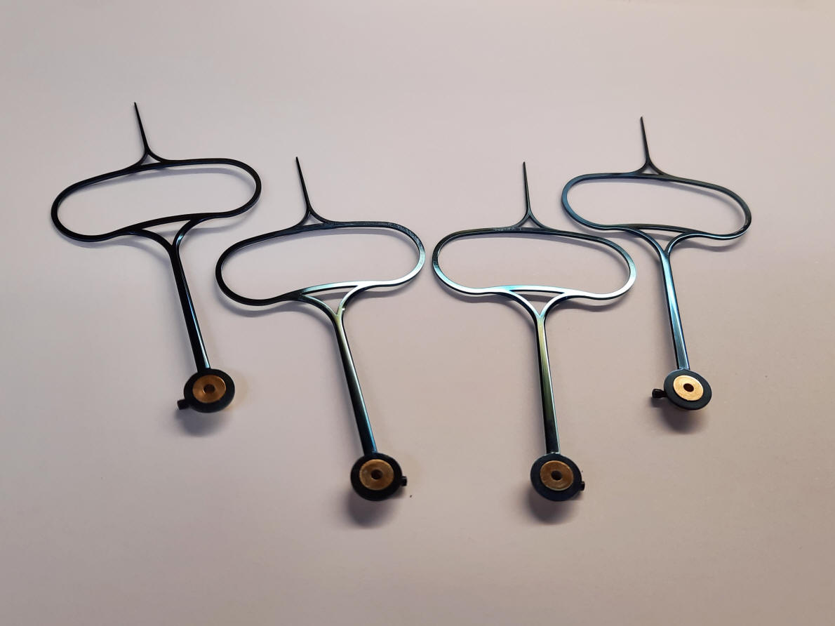 The hands now out of the bluing oven.