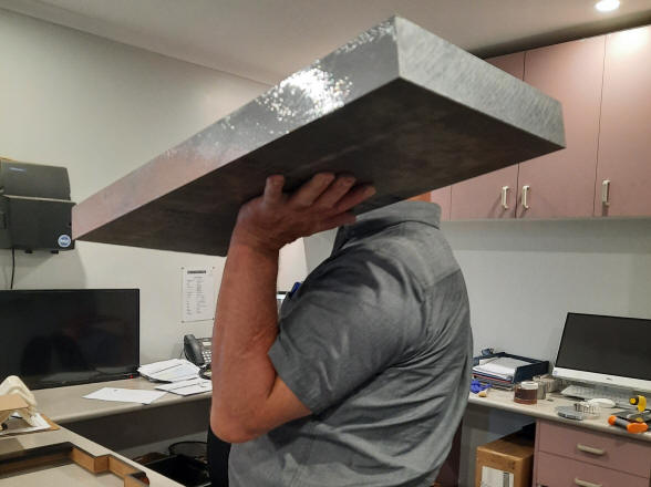 clearance over a wood top when the approximately 250 lbs of the machine was applied was risky and unlikely to be successful.