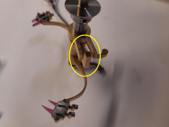 the yellow oval shows the swing limiter, needed in case the pendulums