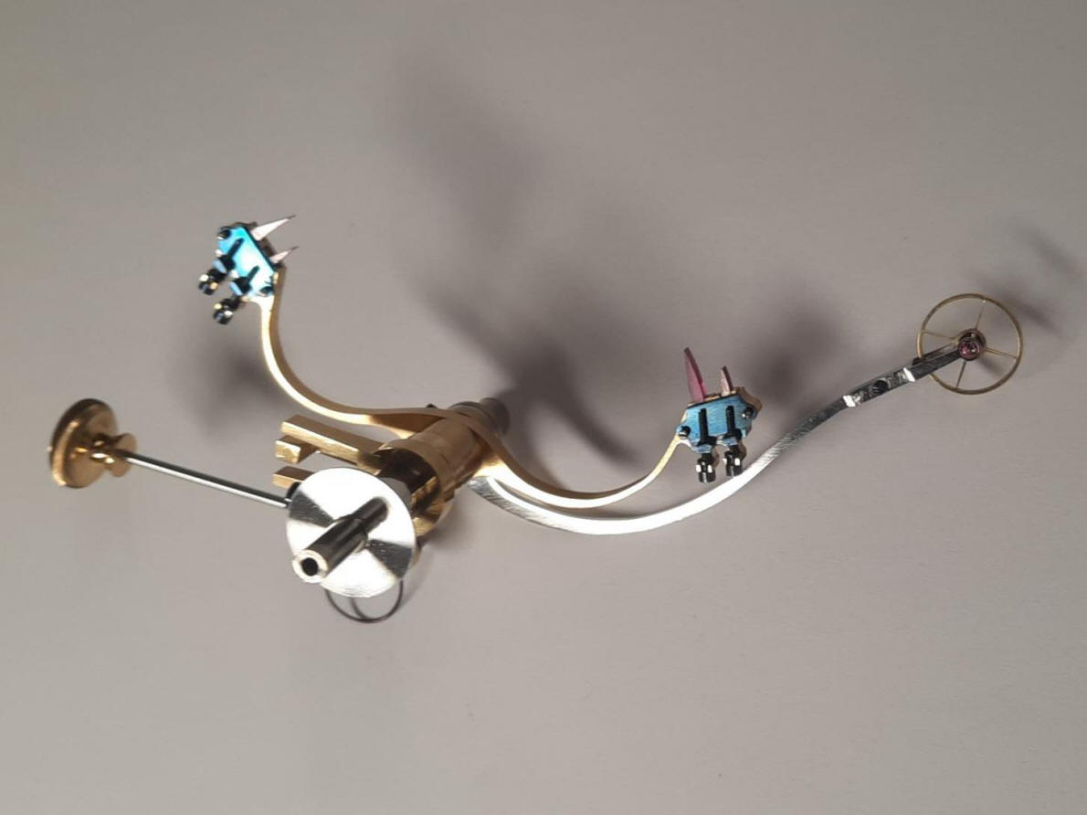 buffered by the spiral spring (within circle), allowing the indexing seconds