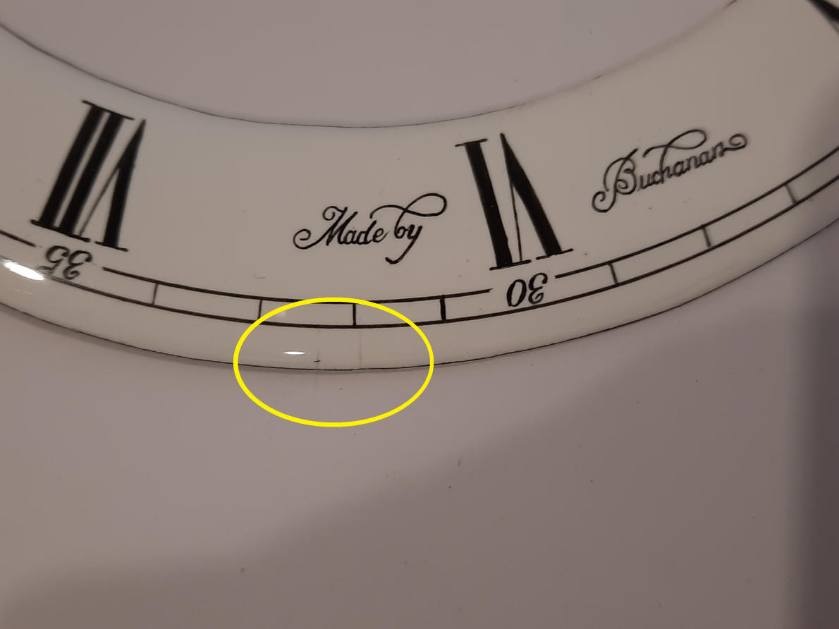 The blemish nearly disappears when placed behind the dial bezel. And to