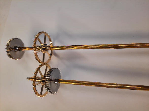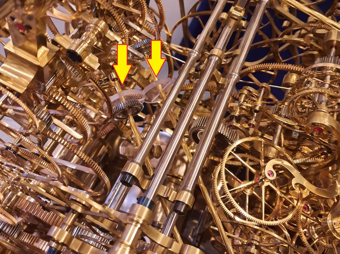 arbors from the dual remontoire driving the pair of escapement wheels could
