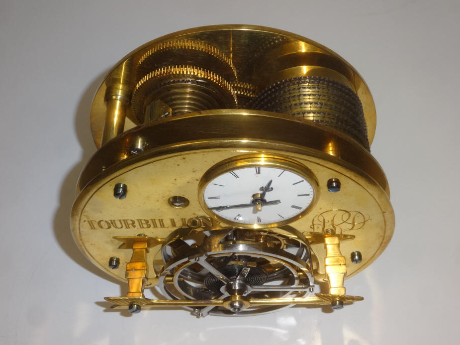 8.5"diameter. Earnshaw detent tourbillon escapement model with clockwork