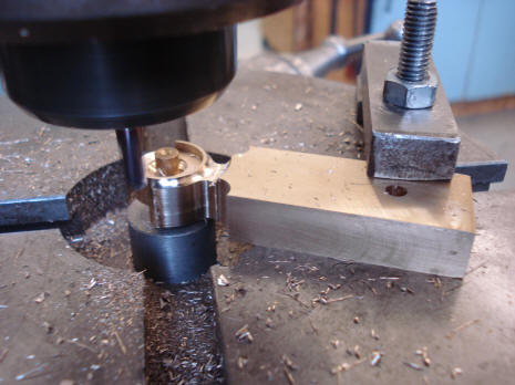 The first photo shows the brass blank with the sector gear's internal