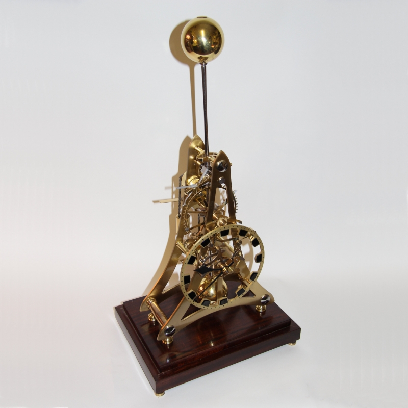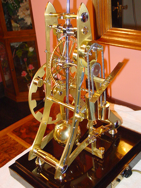 Maker, E. Dent, London, England. Model - Concorde, c. 1970's. 30"h x 14"w x 11"d. Serial number 006 of 35 made. Harrison style, grasshopper escapement with compound pendulum; 2 second cycle, Harrison spring style 20 second style remontoire, Huygens style endless chain 7 minute remontoire for winding.
