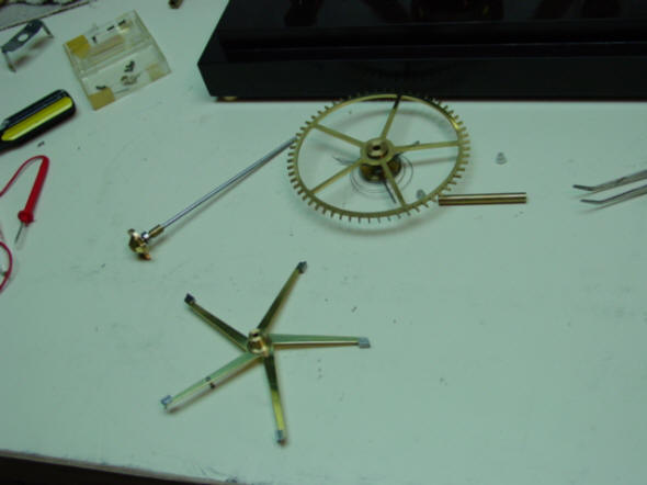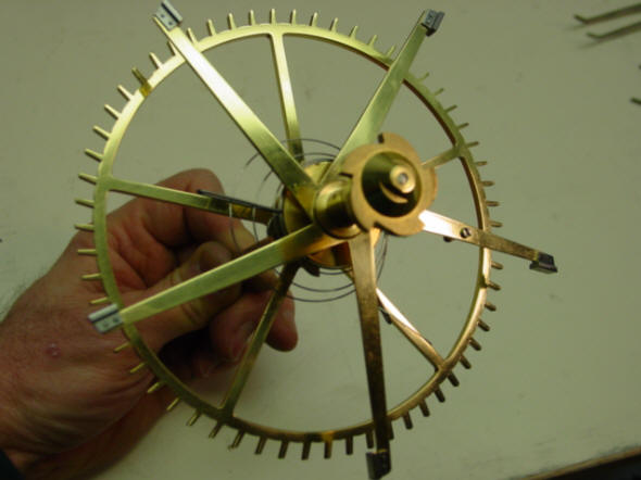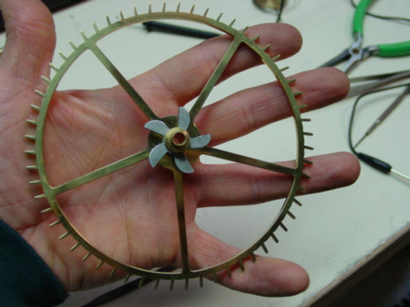 Note the similarity of this five arm design with that of the Mathias Schwalbach three arm tower clock remontoire.