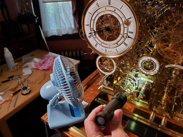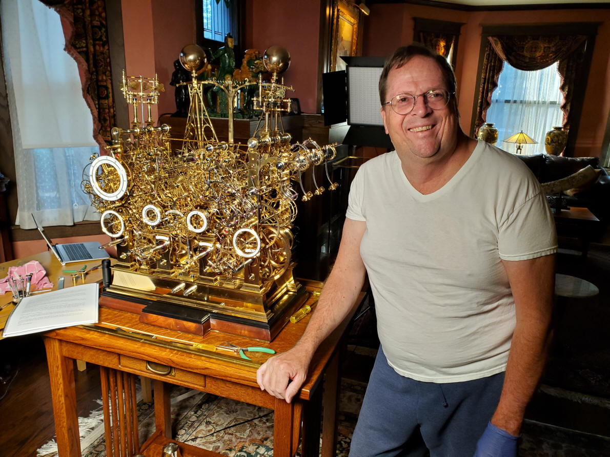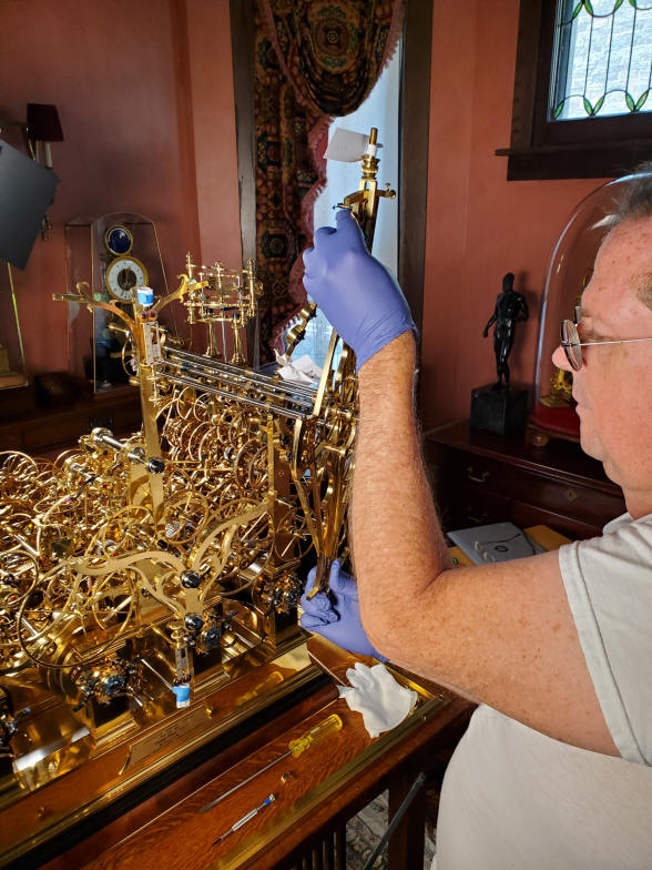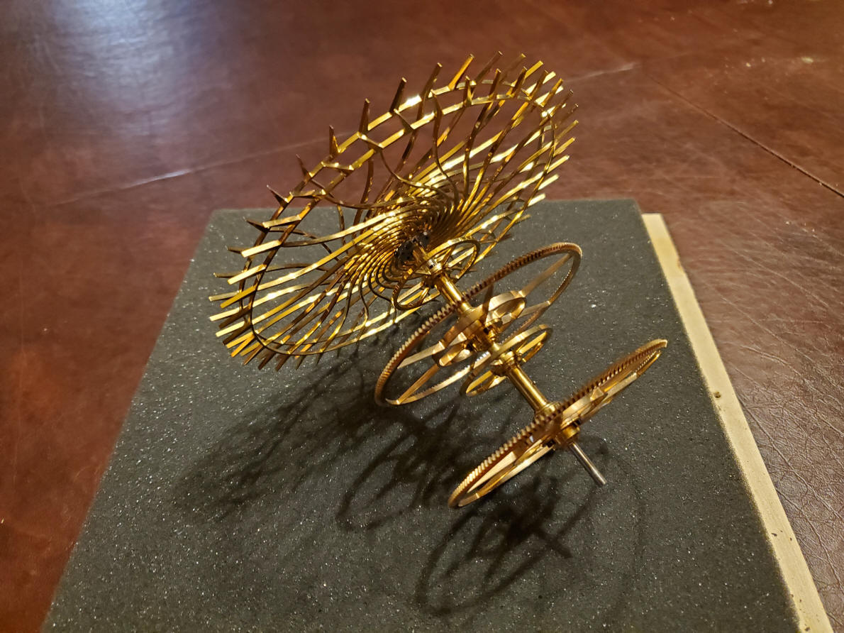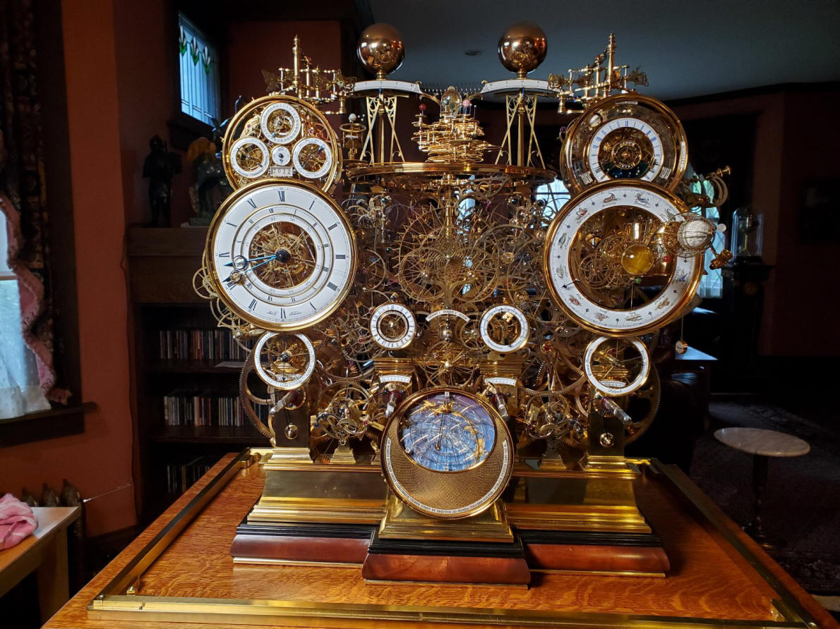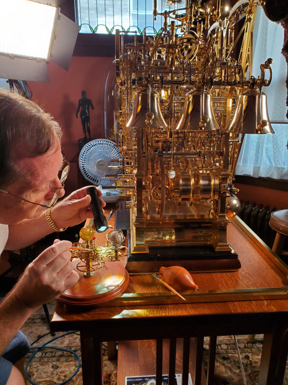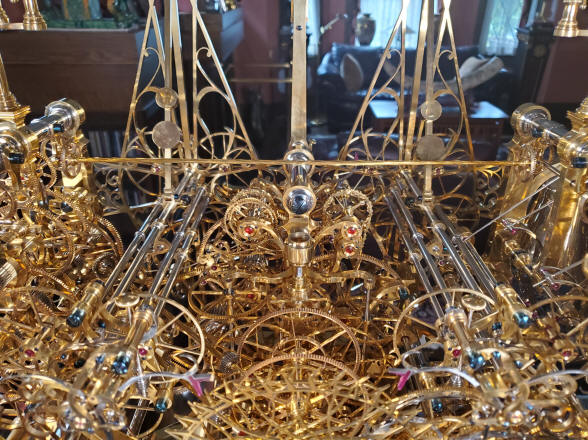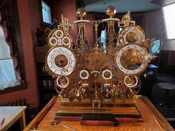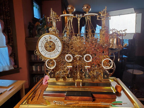 The Astronomical skeleton clock with its smaller sibling. These are amongst