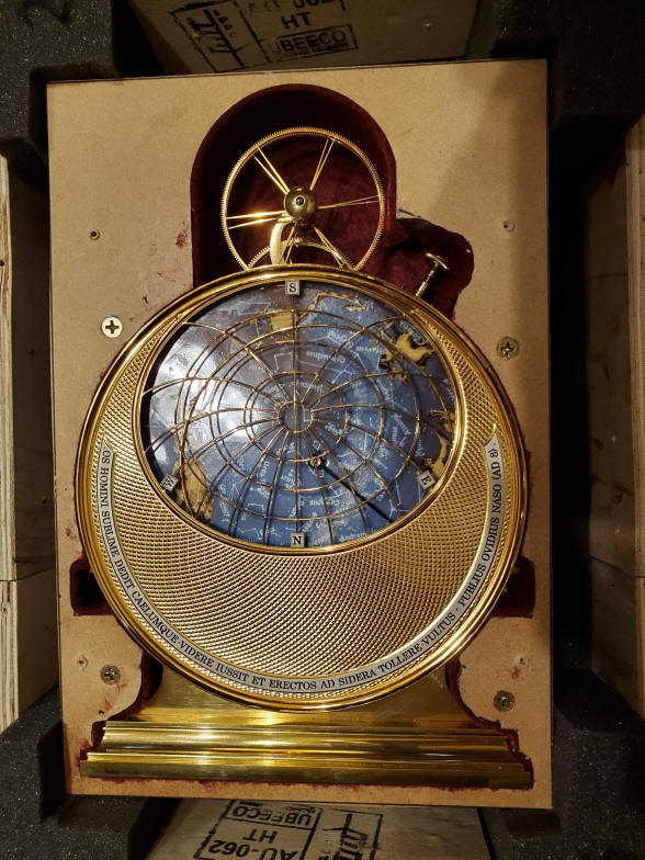 The tellurion is unpacked. The Earth globe was packed separately since ivory
