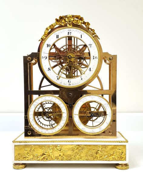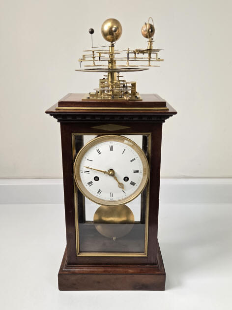 pendulum, hour and half hour strike on count wheel. An orrery is mounted