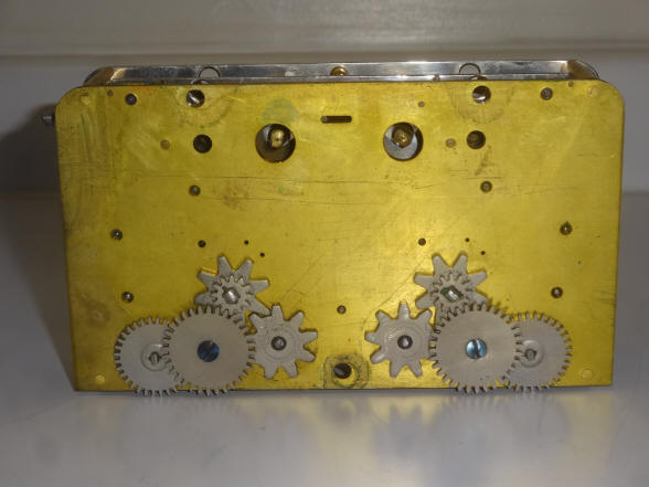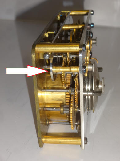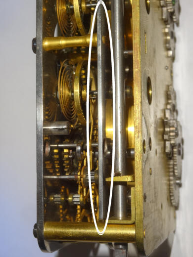 third plate within the circled are and sandwiched between the two outer plates. The additional plate holds the escapements: