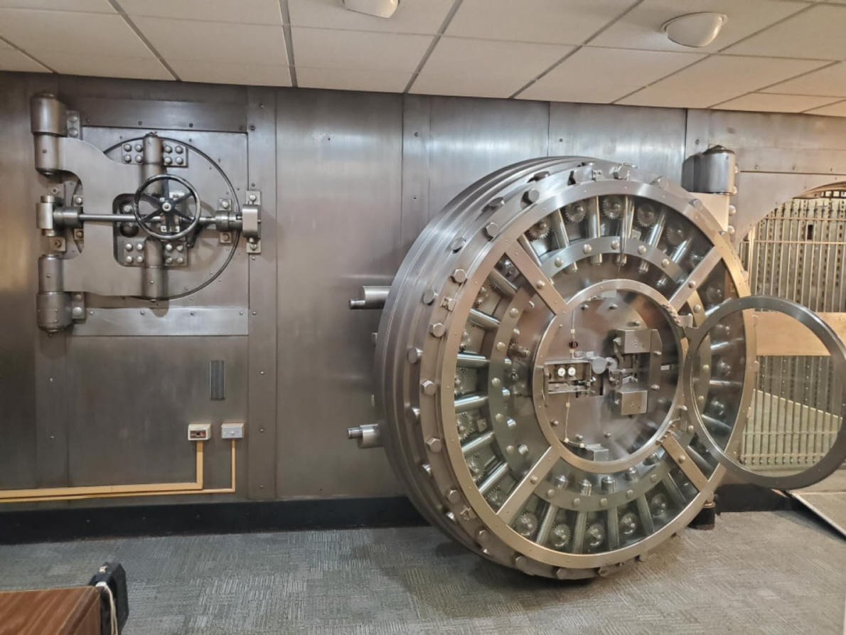 for modern banks to properly maintain. This large vault door was originally