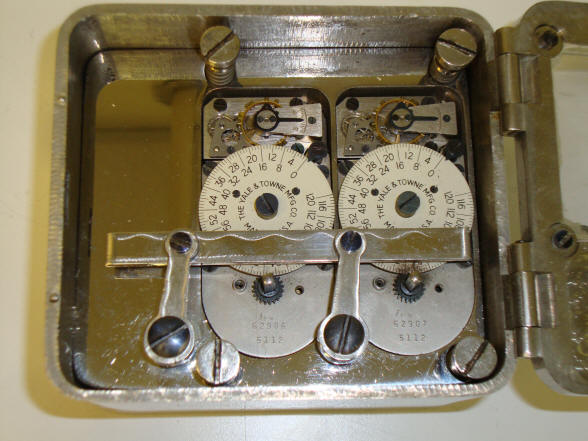 A Model K22 and the interior view of a Yale four tumbler lock within a
