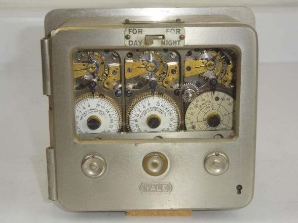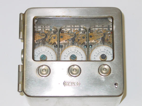 Yale & Towne Manufacturing Co., Stamford, Connecticut - 3 movements, Type T321 DAT & T321, T322 large case format The advent of ever stronger safes during the mid 1800's made the nighttime burglary more difficult to accomplish in the time available before opening time. Thieves then turned to what was known at the time as the "masked burglary" taking the proprietor or other person who knew the safe's combination and taking him to the premises to open the safe in the middle of the night. The time lock was invented to foil this strategy preventing the safe from access until the opening of business. This resulted in the early morning or even daytime holdup where the thief would come in just before or after opening time when the safe's time lock had gone off guard and making the personnel dial in the combination to the safe. This problem was quickly recognized by the security industry as evidenced by a number of patents applied for to circumvent this problem as early as the the late 1890's. But it was not until the two examples below by Yale that the first commercially produced time locks for this purpose were introduced in 1932 by retrofitting a time lock first marketed in 1890.