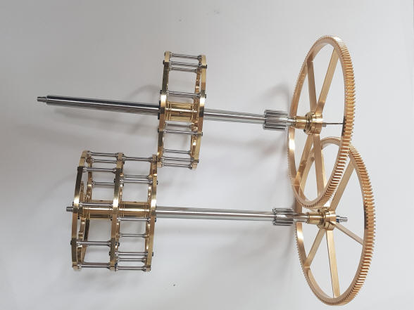 time and each iteration allows for the quarter or hour bells to be struck. This double gathering design was based upon the way counting racks
