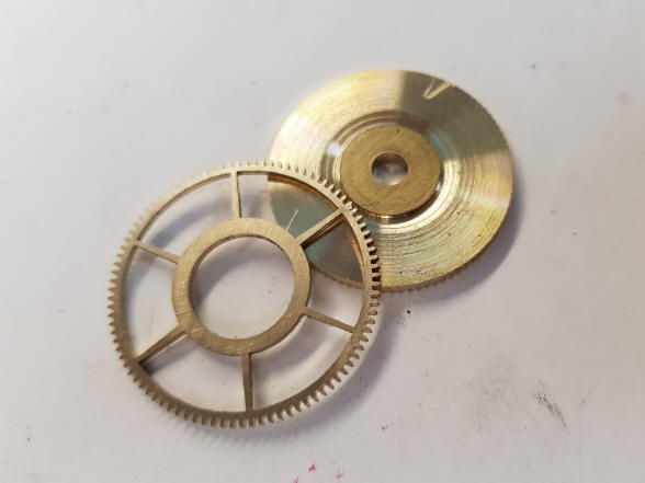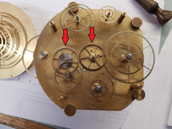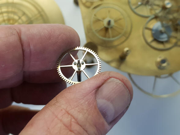 photo) is the finished arbour. You can see the steel pinion at 11 o