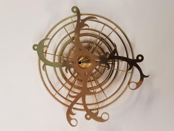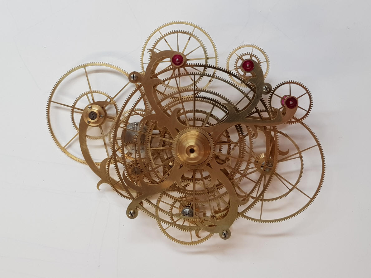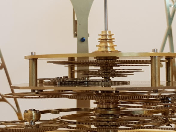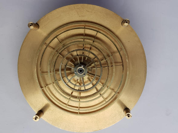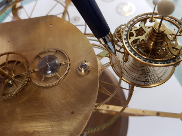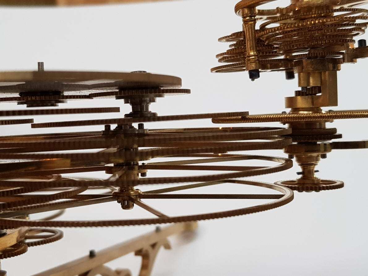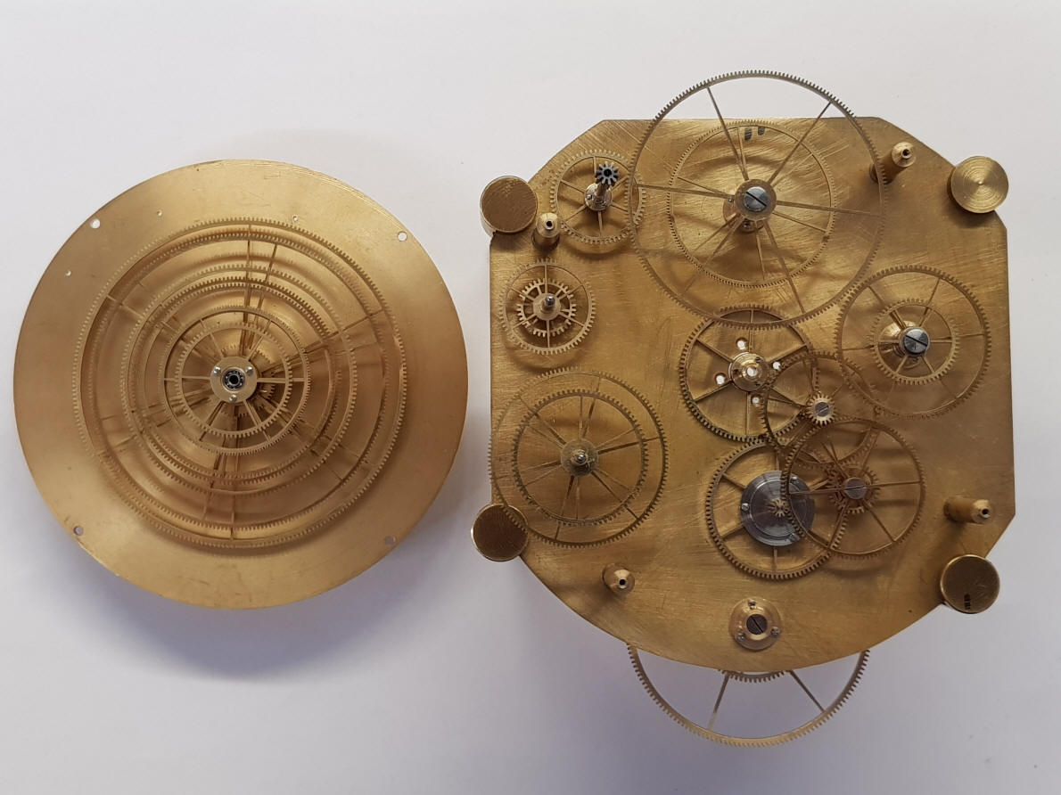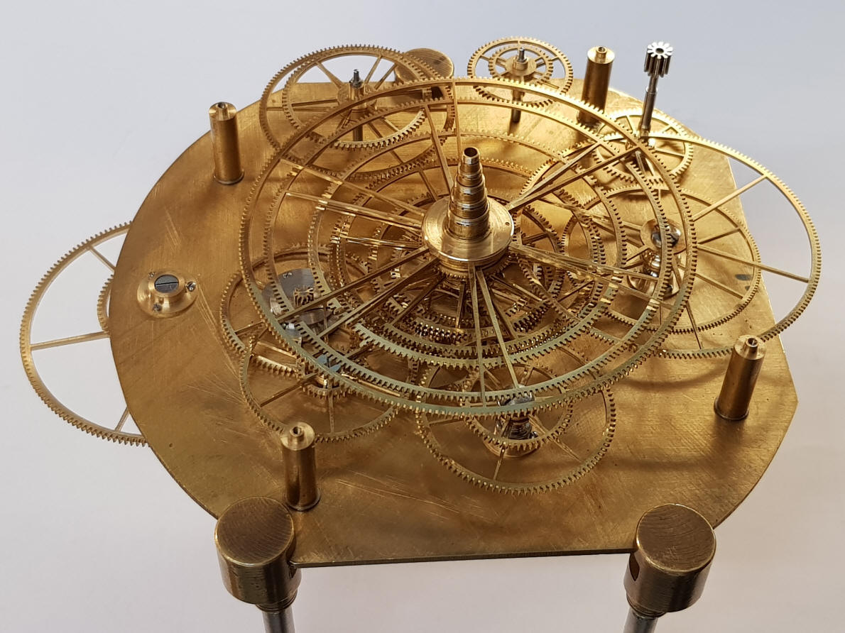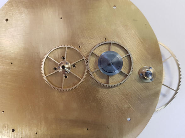 gearbox mounted within the orrery dial ring and set upon the rest of the