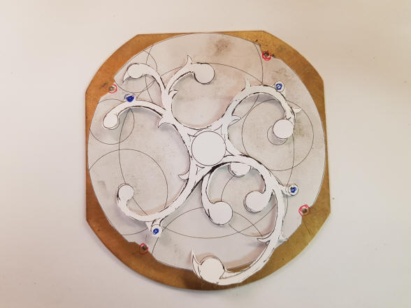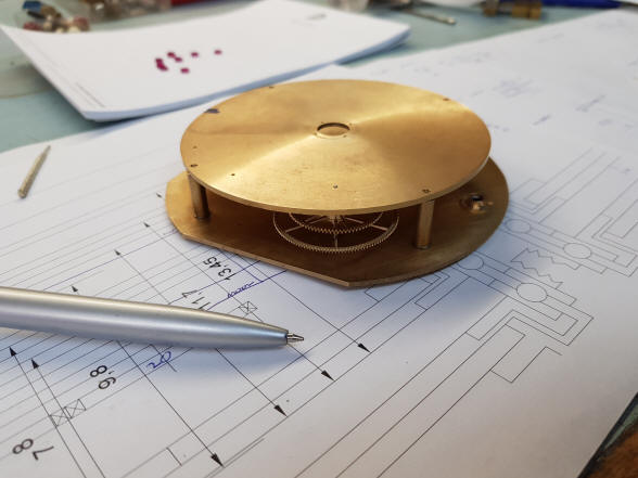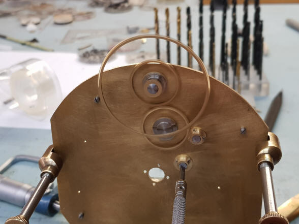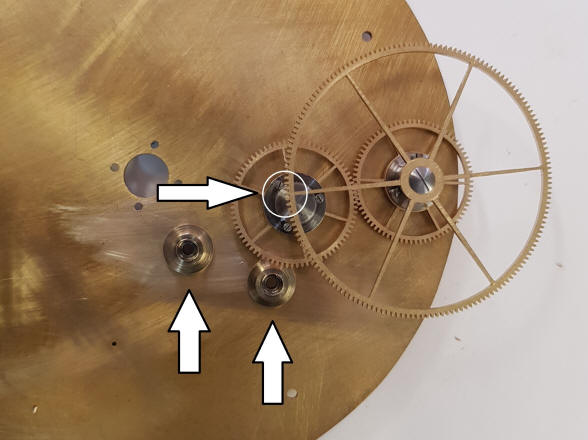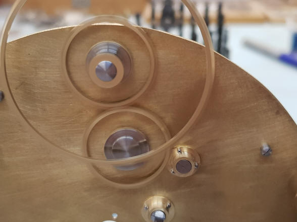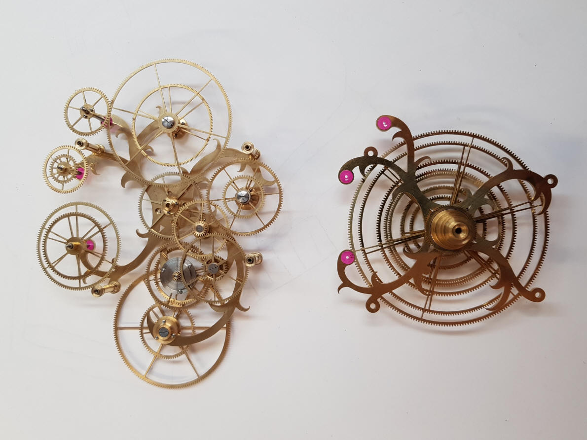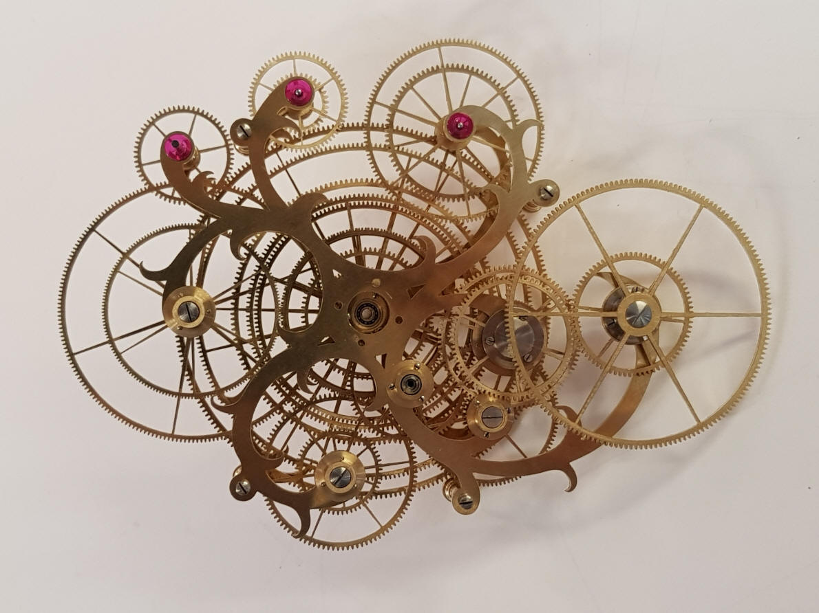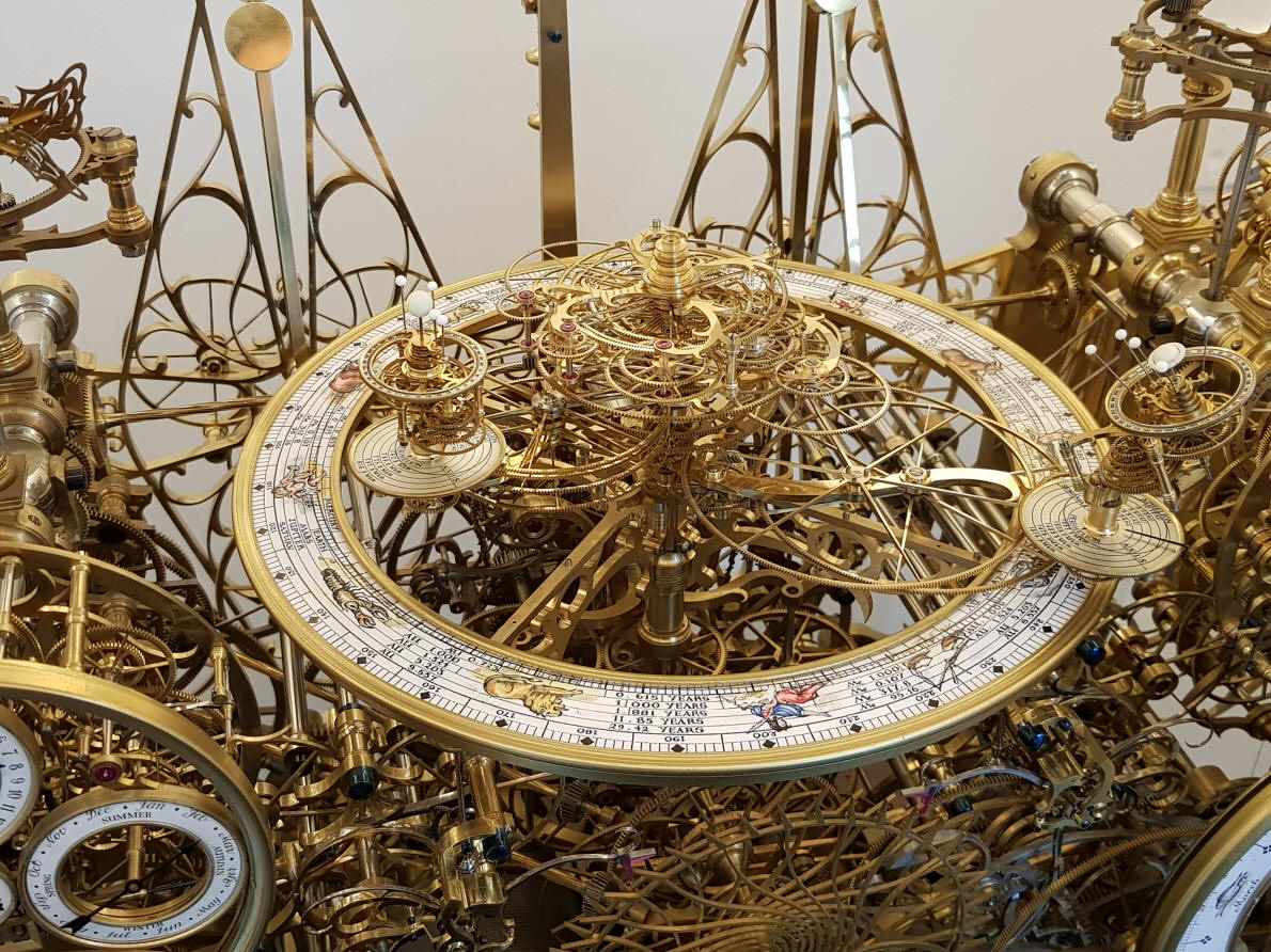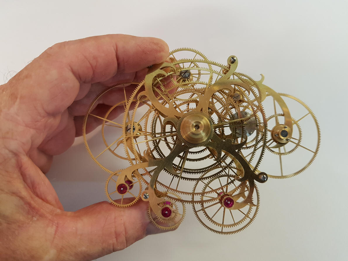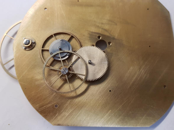 gearbox mounted within the orrery dial ring and set upon the rest of the
