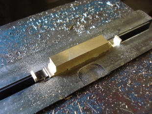 photos show the part still attached to the rough block. Next the part is then sliced off with the slitting saw.