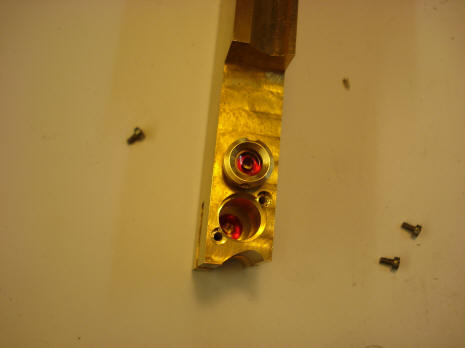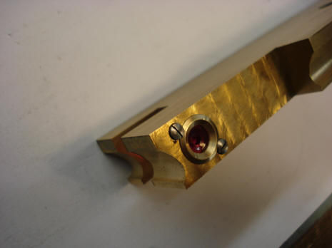 its spring. Note the two red jewel caps which cover similar ball bearing
