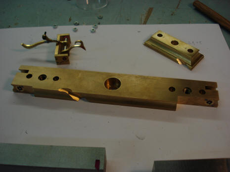 interior mounts to which the brass pillar uprights will be attached. Two of