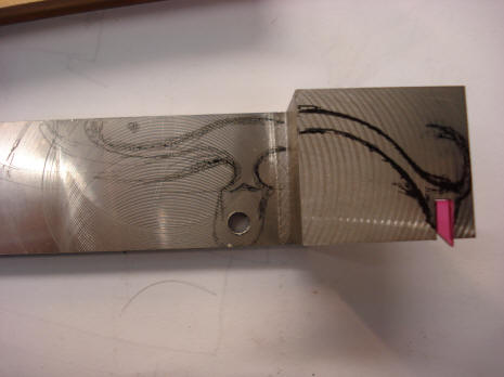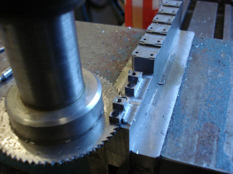 the photo. First the raw stock is cut on the reciprocating hack saw, second