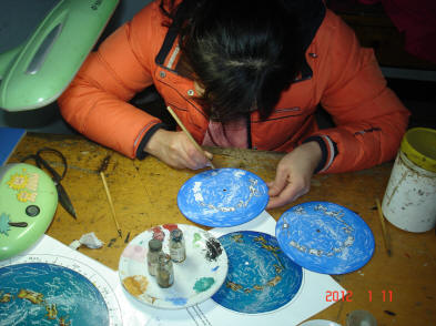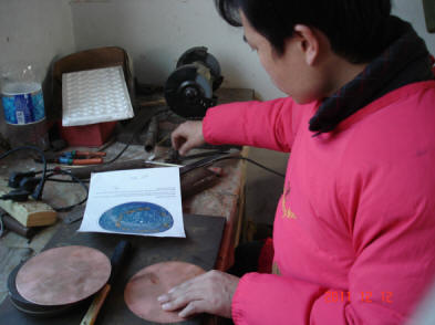 The expert enameling is carried out by Mr. and Mrs. Feng. First Mrs. Feng