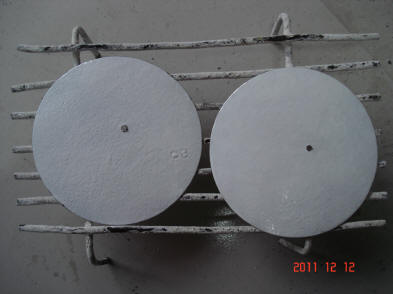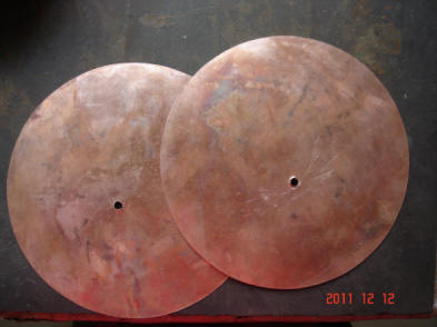 copper blank. The dial has already been fired once in a kiln to produce blue
