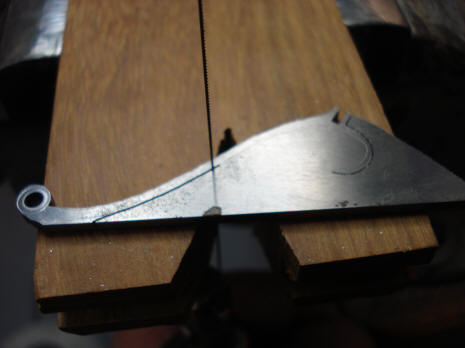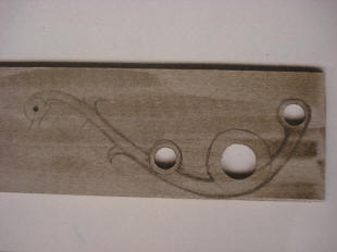of the rocker frame drawn on the surface. Holes are drilled to accept the