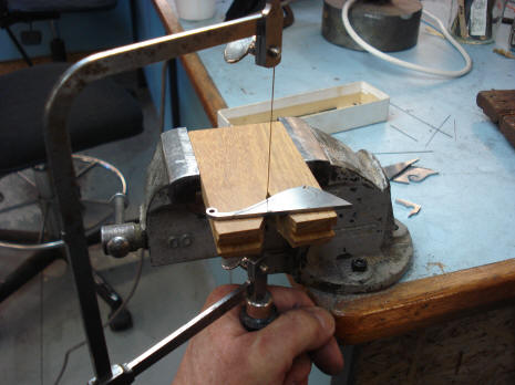 powered jeweler's fret saw used for most of the brass flat stock in this