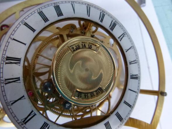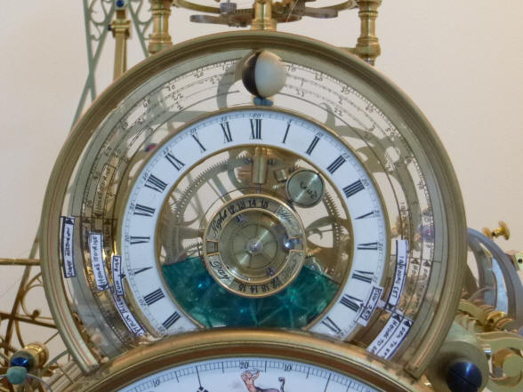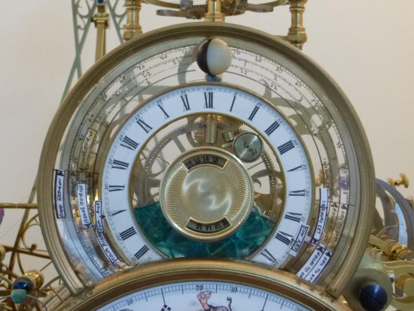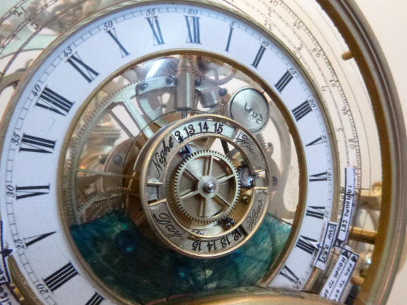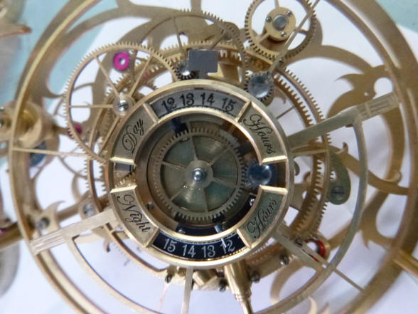 The center dials on the sun / moon rise-set mechanism depict the length