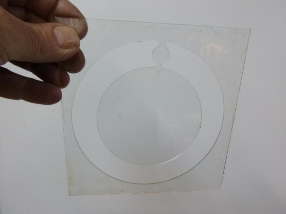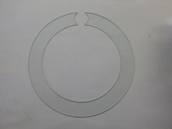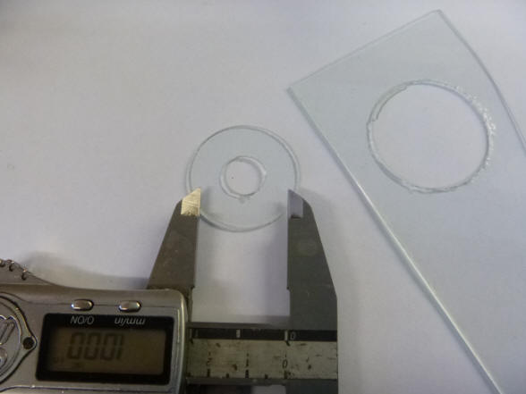 from the photos I cut a donut of glass 1 and 1/3 of an inch in diameter from
