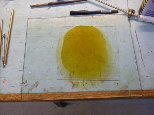 a sheet of 1.2 mm glass. This glass was clamped by its edges against a block