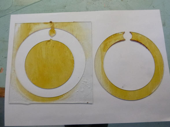 cut out from the background piece of glass without the center disk