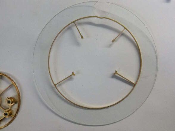 machined. Next it is positioned on the delicate glass dial to check for fit.