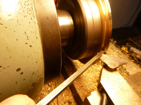 A brass blank is turned