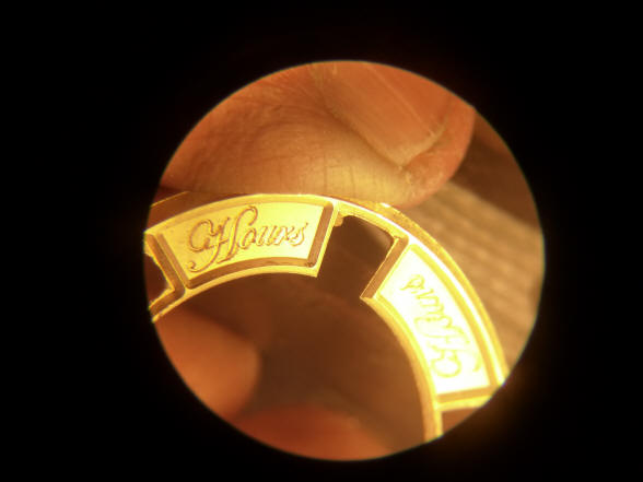 attached to the brass backing. The second photo shows a steep three quarter