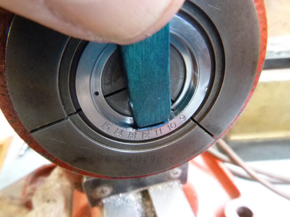 an abrasive stick to finish the surface on his lathe. Next the ring is split