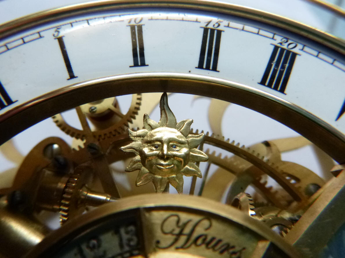 with the ends of the screws being domed, polished and blued giving the sun face a