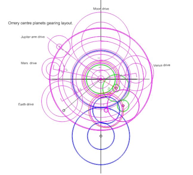 the drive wheels from the center input arbour to the Jupiter arm and the