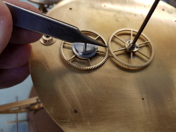 holds the main lower plate to the centre shaft of the orrery. I bored out