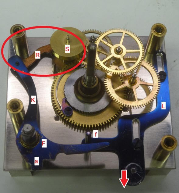 is hidden behind the contrate wheel in the photo. The hook on lever