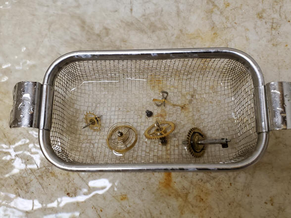 mechanisms, everything but the movement. All of these parts were cleaned in