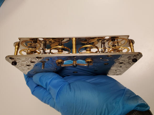 The completed movement, front elevation. Pivot "jewels" are made of agate.