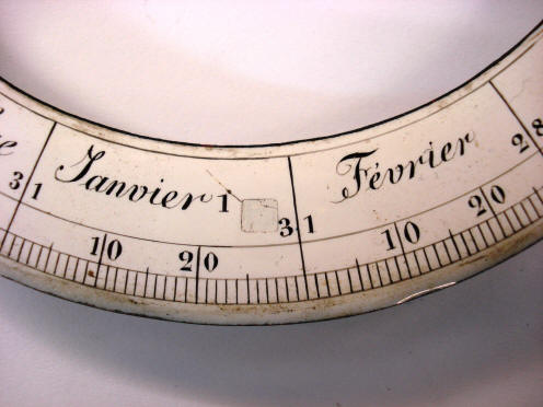 (unequal numbered dial), the zodiac sign for the day, the day's common name.