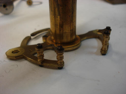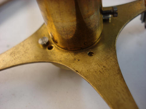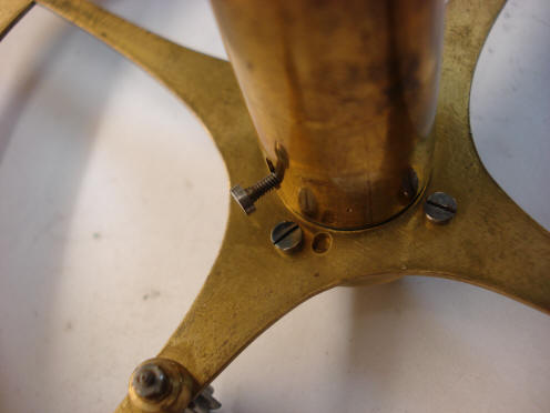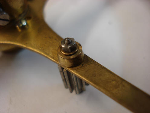 the very crudely made spacer-washer and on the big brass spoked wheel we can