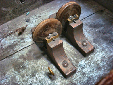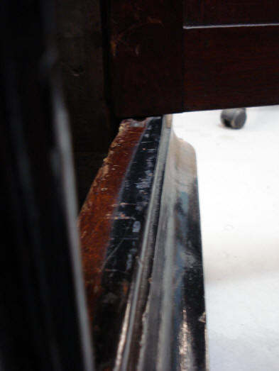 many alterations in the various attachment points over the years. Next an inside shot of the cabinet floor with the lower pulleys in