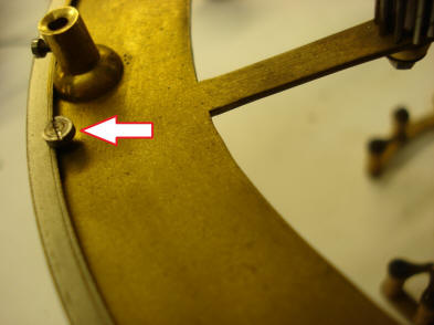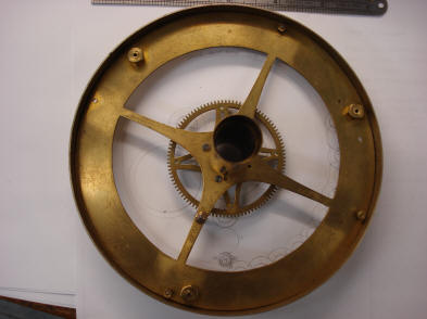 to be spoked out. Also one can see the ratchet arm extended over the impulse wheel. The ratchet itself is tripped by