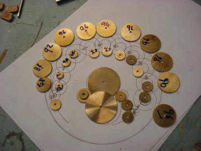 The fabrication of the wheel train begins. First the they are scribed in the