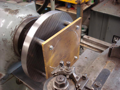 The flange is now screwed into the plate securing the wheel in place, yet