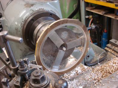 brass blank in a pattern to minimize waste. Next the initial drive wheel